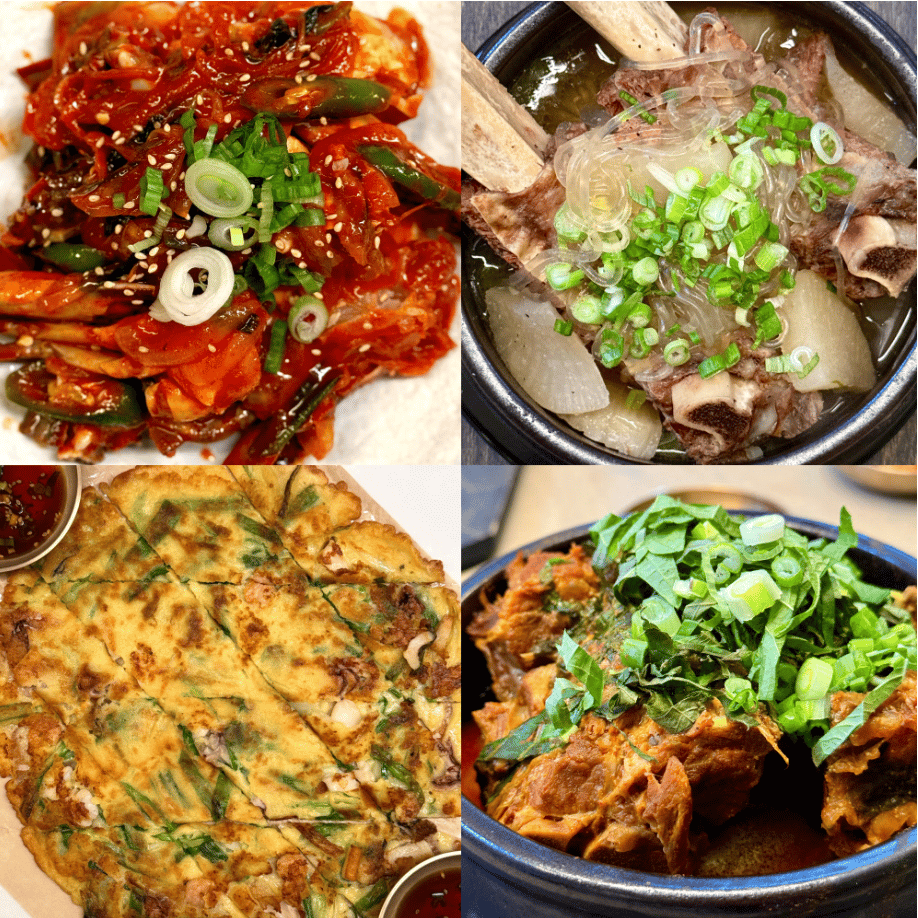 Indulge in a variety of beloved Korean dishes, including savory pancakes, marinated crab, tender boiled pork, and more.